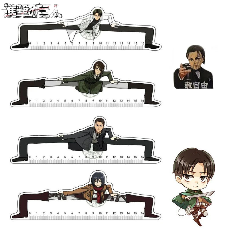 Régua Eren Jaeger,Mikasa Ackerman,Armin Arlert,Levi Ackerman,Reiner Braun Anime Ataque em titã - 21cm